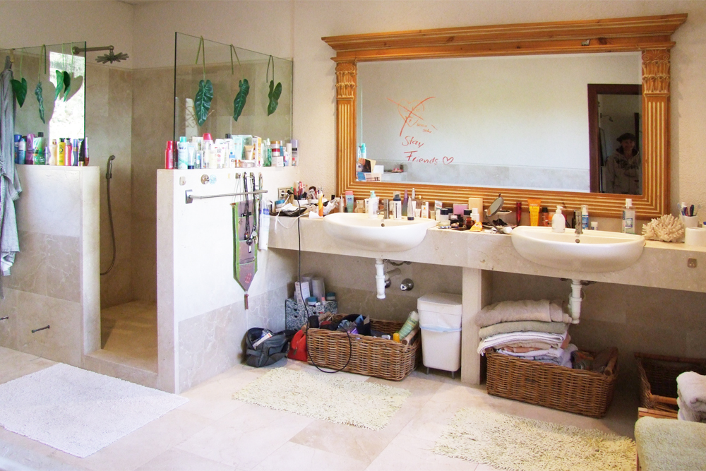 Im Obergeschoss dieser schönen Finca, befinden sich zwei Doppelzimmer, welche sich ein Badezimmer mit separater Dusche teilen, sowie die „Master-Suite“ mit eigenem Bade- und Ankleidezimmer.